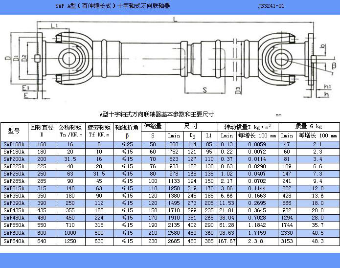 SWP B型(有伸縮短型)十字軸式萬向聯(lián)軸器